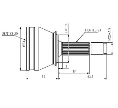 COM EIXO DANA / 20 DENTES INTERNOS / 21 DENTES EXTERNOS SEM ABS